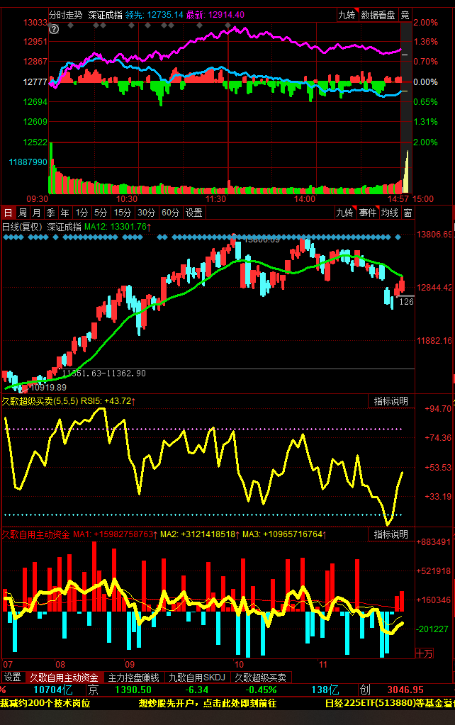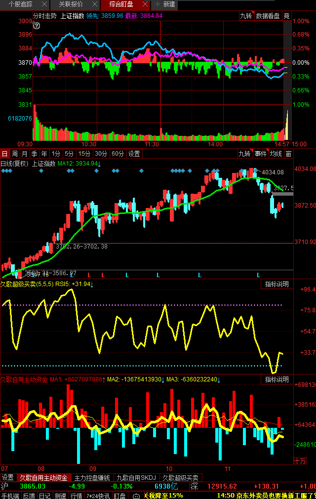 昨天进场抄底的资金今天绝大部分得以延续,而昨天没有进场抄底的个股,今天继续转向下跌,这些个股因为得不到主动买入资金的光顾,还会继续下跌下去,从下图来看,今天最大阻力来自义无反顾抛售的上证板块