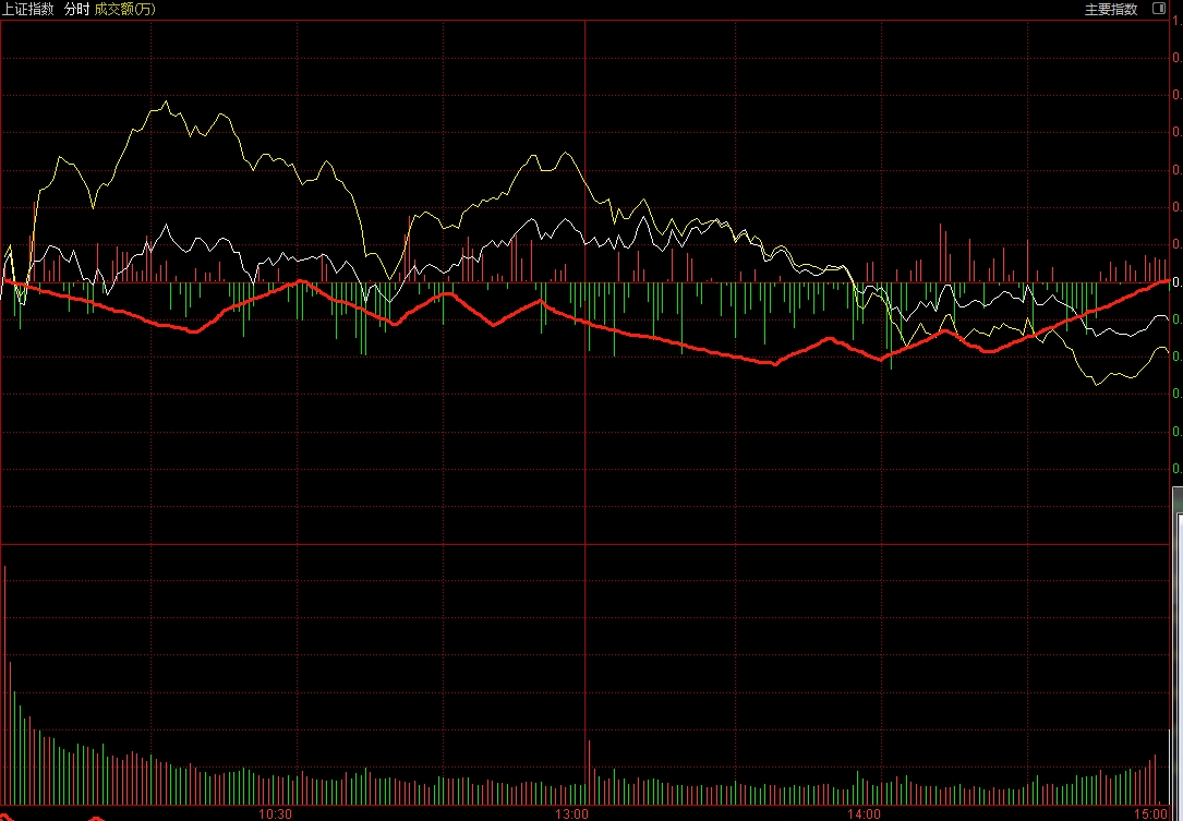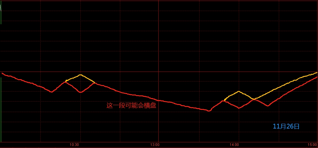 今天模拟图基本符合实际走势,具体细节差点,尾盘反弹较弱。横盘和下跌时间多,符合预测。