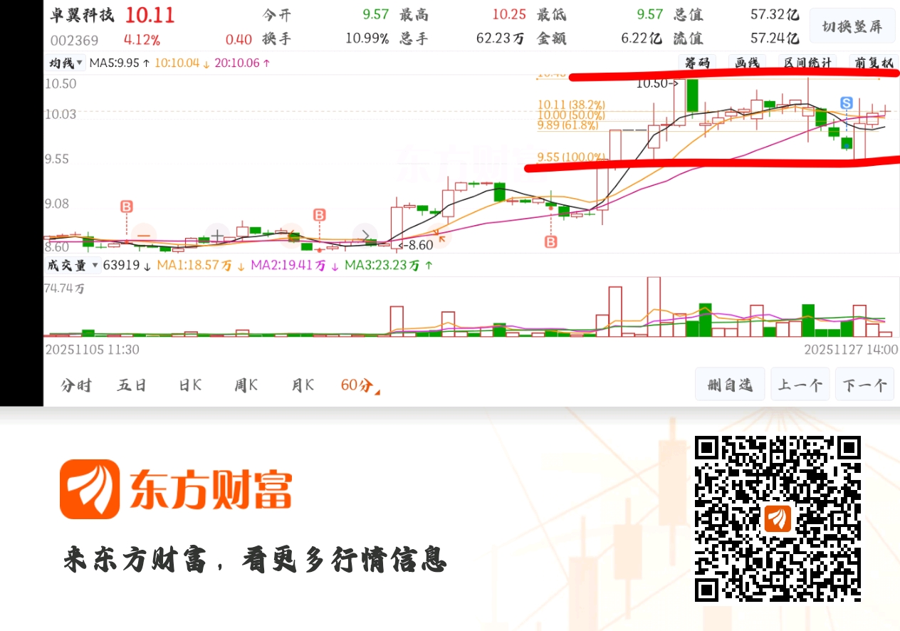 卓翼科技最近在这箱体里震荡了,什么时候突破10.50附近就起来了