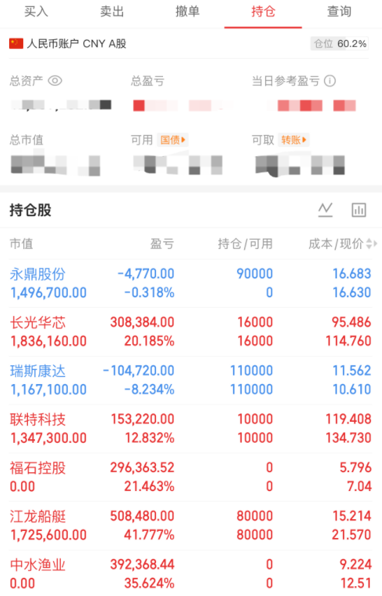 说一下持仓。7.04撤退福石控股、12.51撤退中水渔业,16.683介入永鼎股份。
