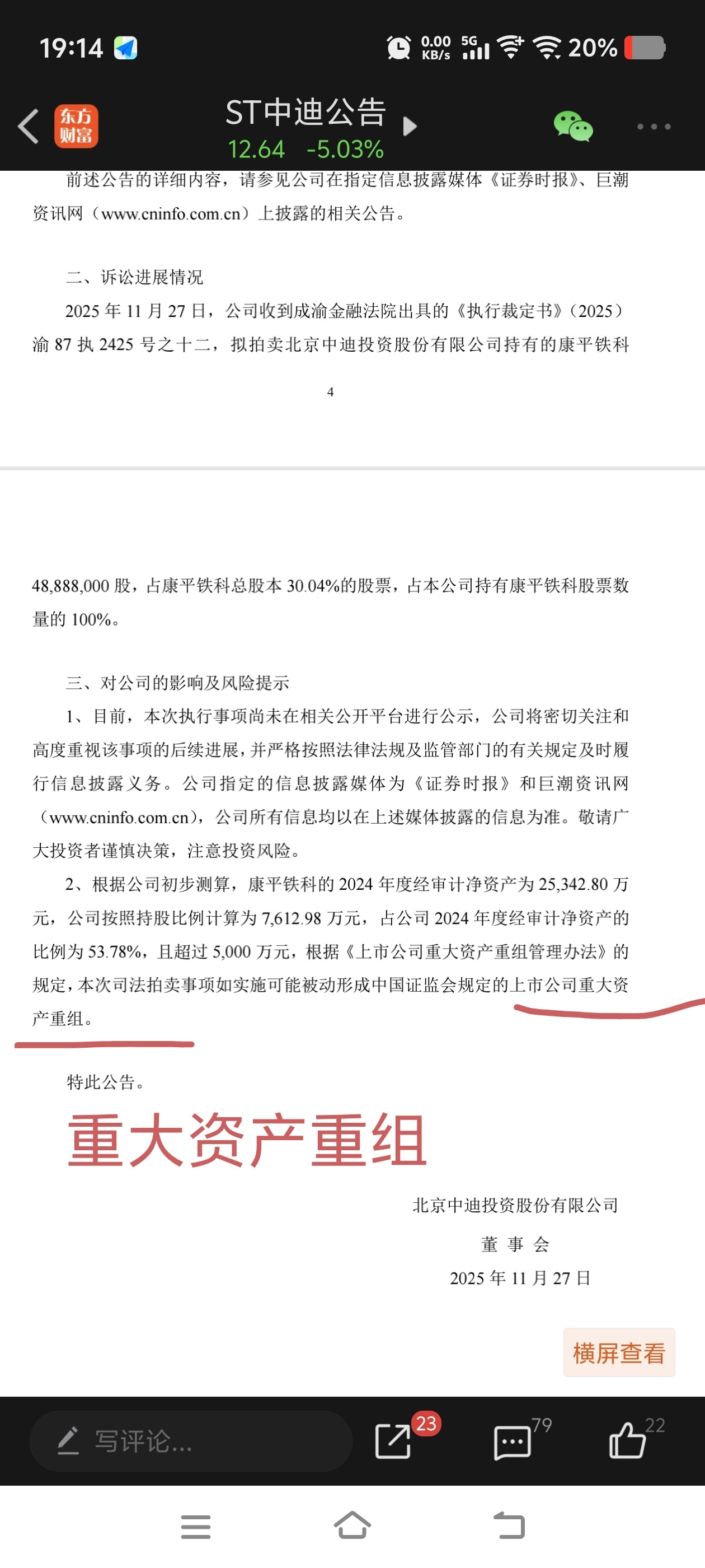 2024 年 5 月 14 日,北京中迪投资股份有限公司(以下简称“公司”)披露