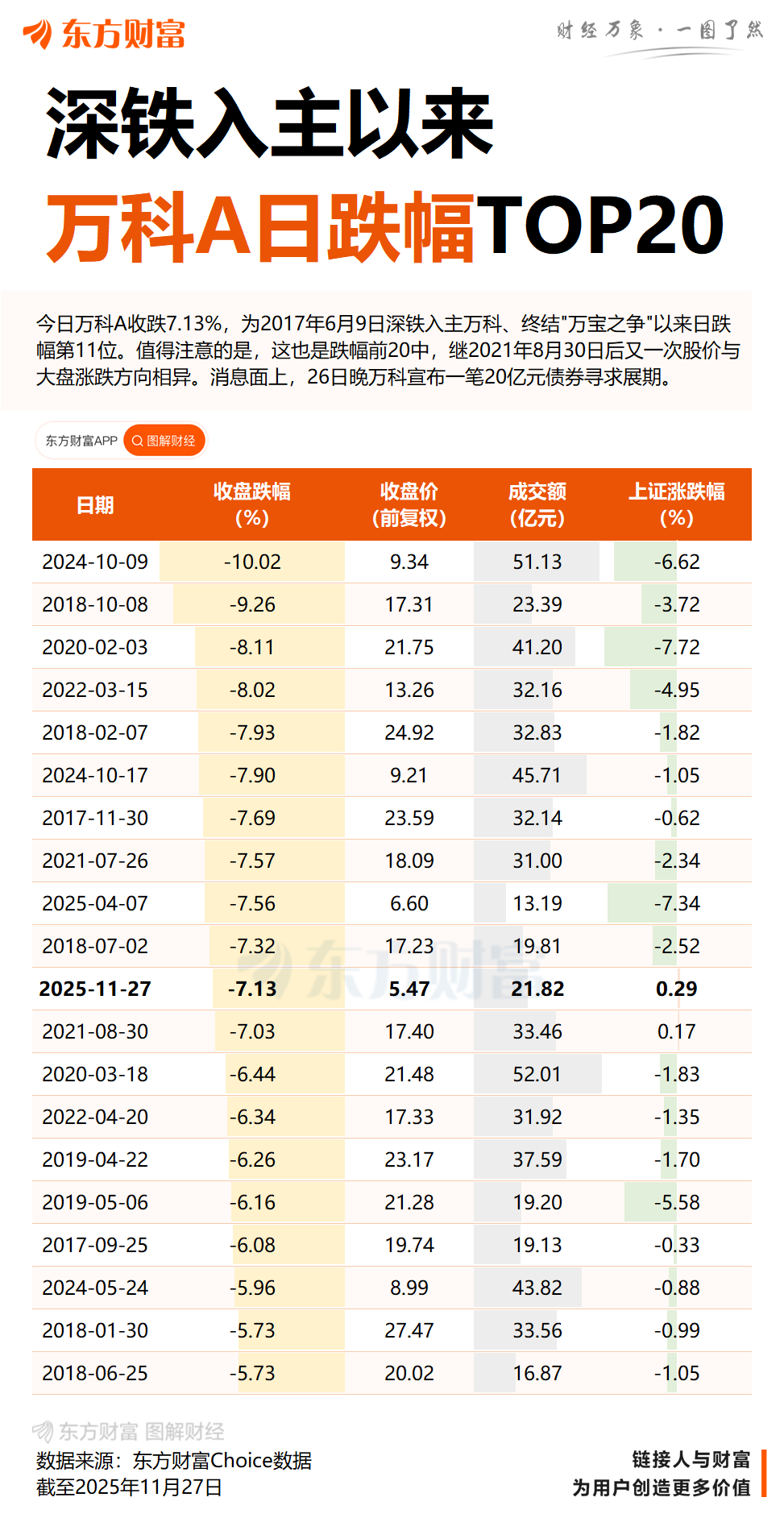 银行11月26日深夜披露万科一笔20亿元债券将展期的消息后,今日该公司多笔债券继续大跌。