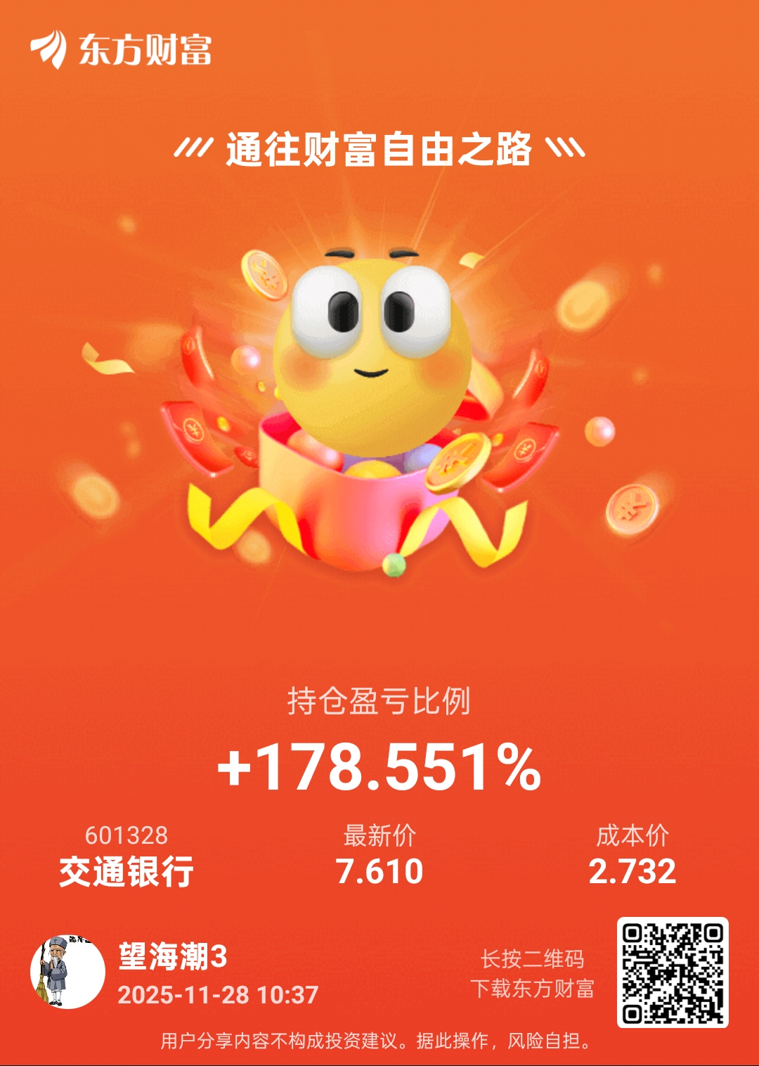 拿银行股的朋友真的不要急,我刚买时也是套住了。逻辑想通还有什么问题吗?看净资产看市盈率都是给自己心理按摩的,不要盯着看股价了,看看天空,看看白云,看看身边的爱人,你阻止不了它的涨跌,看它有用么?