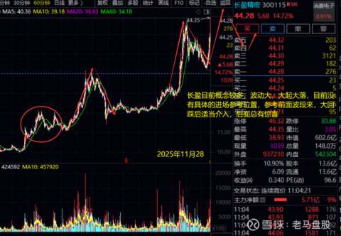 长盈精密堪称蹭热度小能手,前有向英伟达供应线缆,又是向META供应AI眼镜结构件,最近又切入机器人概念,现在又声称和谷歌合作,这货业绩平平,蹭概念第一名。前天还写了支撑打算追踪一下,现在就破前高了。看来这个股找短期支撑压力意义不大,目前$长盈精密(SZ300115)$ 形态和去年低相似。操作上遇到大波段回踩介入总有惊喜,耐心等待吧(参考前面波段),