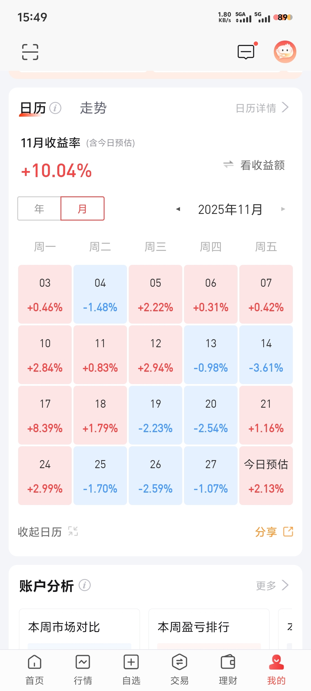 从10月和11月两个月来对比,虽然说11月的收益率大于10月,但要知道10月少了至少5个交易日。所以11月的成绩并不理想,周末在家好好反思,好好复盘,争取12月更上一层楼