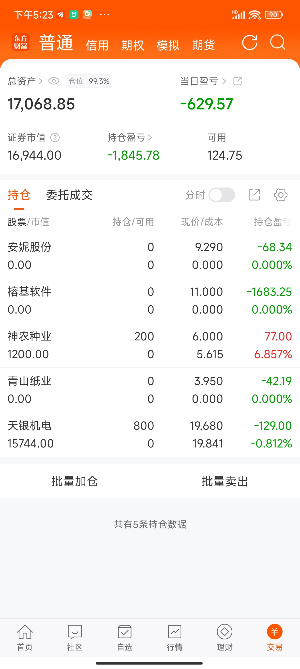榕基软件昨天小低开,以为反转,强行补仓做T失败,调整延续,开盘清掉青山纸业昨天尾