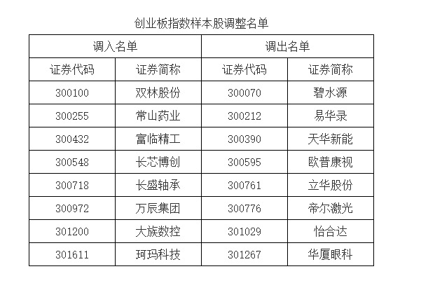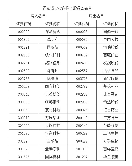 深交所调整深证成指、创业板指、深证100、创业板50等指数样本股