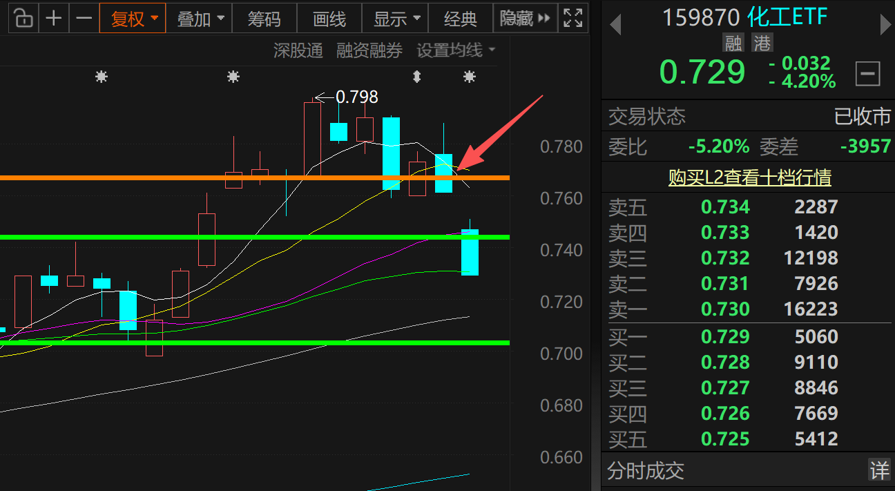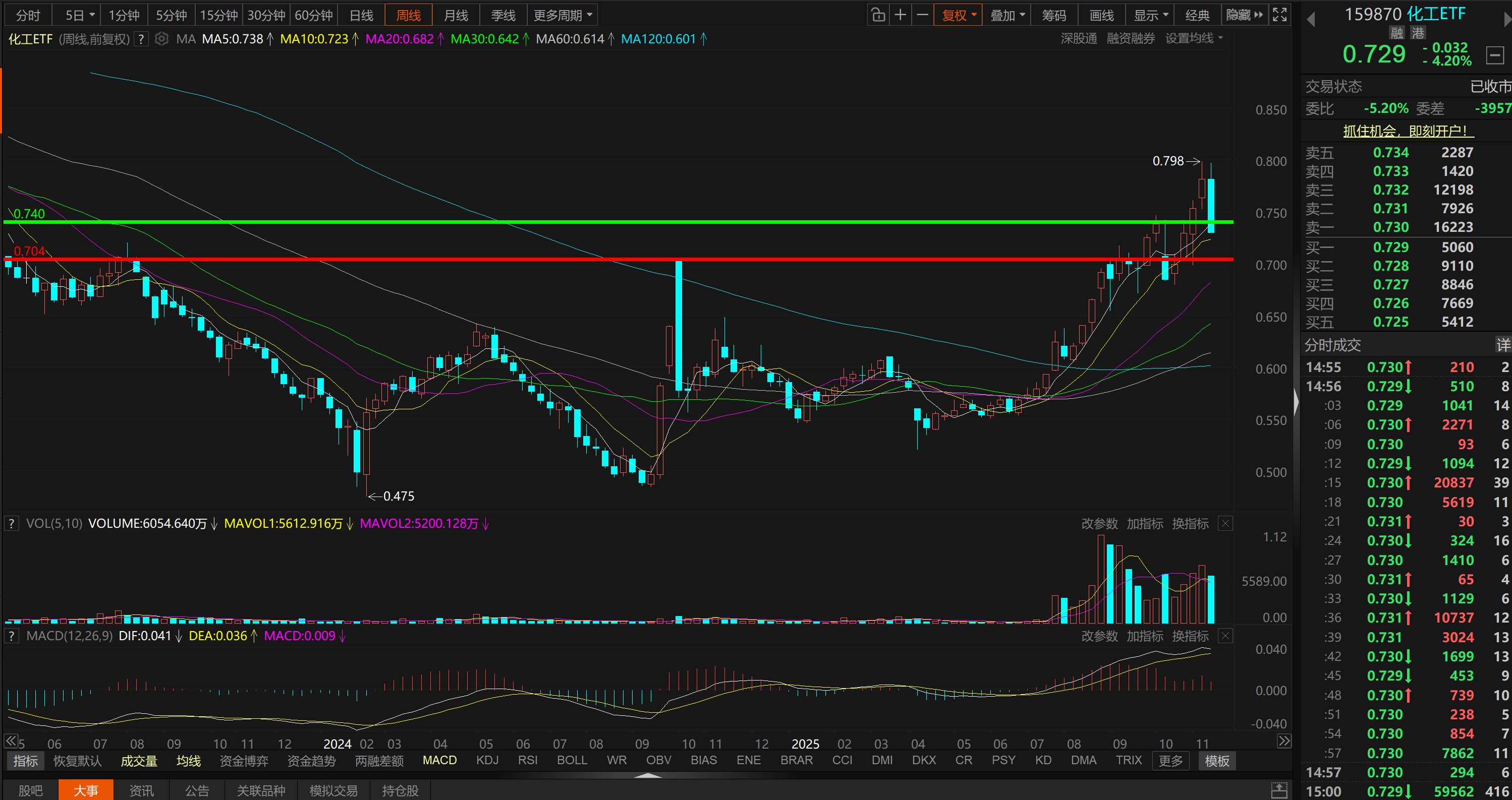 10、化工ETF(159870),周线级别0.704有一定支撑。
