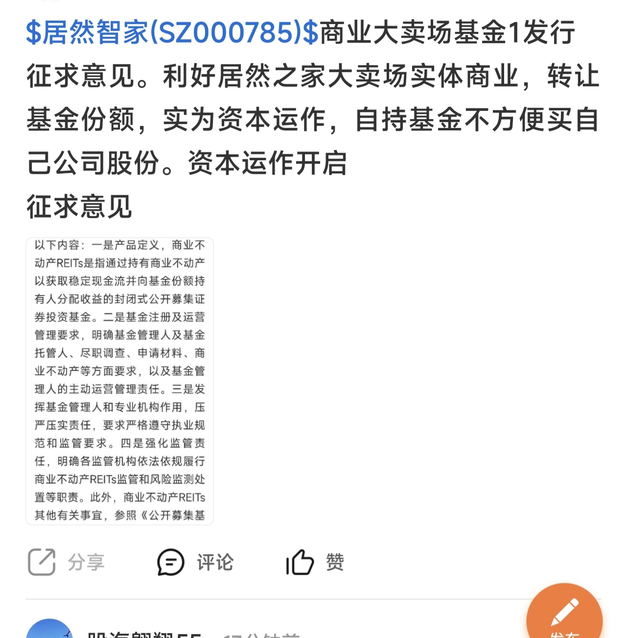 居然之家特大利好不是益价转让基金份额而是政策不断加特支持商业物业实体大卖场,自有