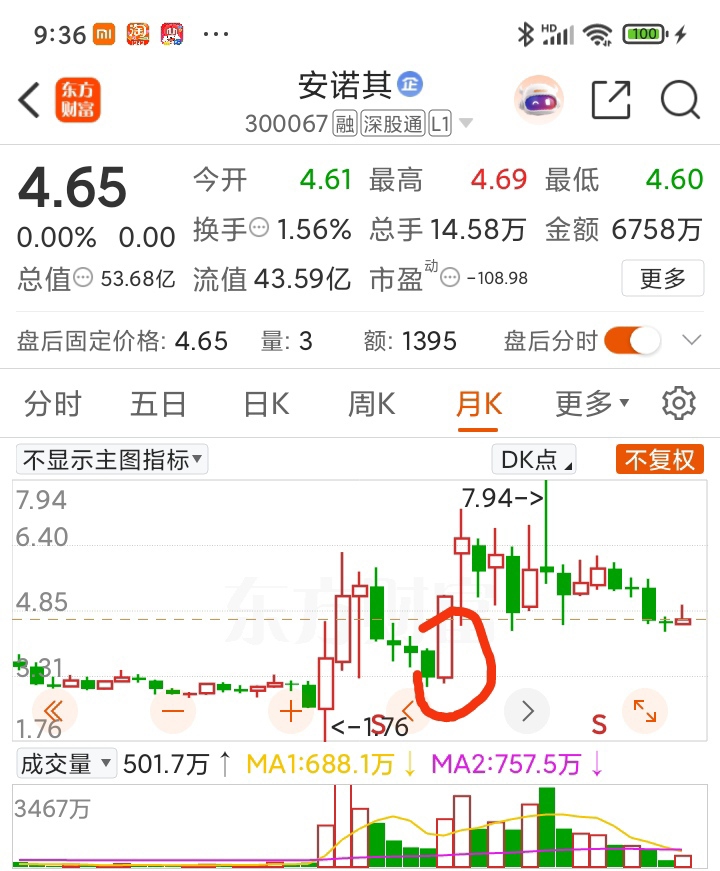 这根K线关注一下,现在月线的位置处在这根K线的三分之一处,说明主力还在,本次的调