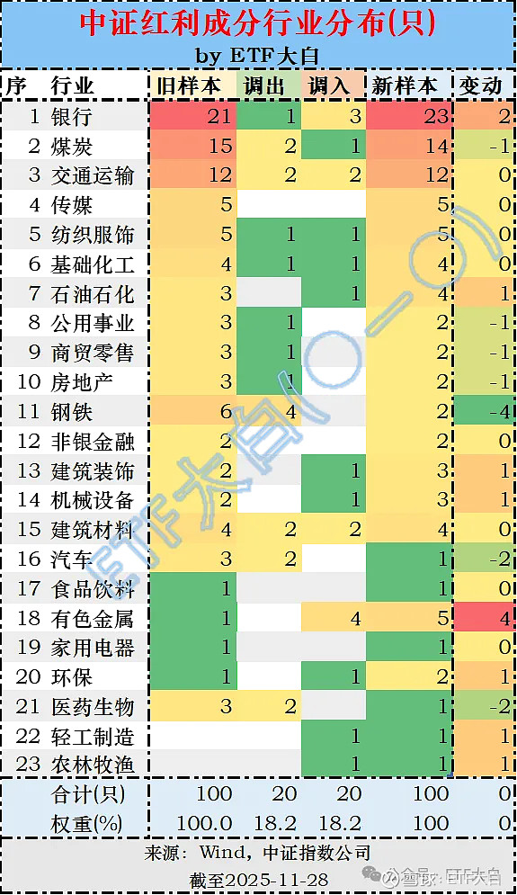 综上,本次行业调整不是简单的基于股息率估值的“高低切”,而是在巩固核心基本盘的基础上,向盈利质量更高、增长逻辑更顺的领域进行“结构性扩张”,使指数的行业布局更加健康、均衡。