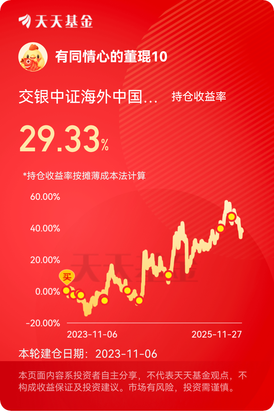 #11月我的投资总结!,11月我的投资总结!# 海外互联网震荡上行,走势稳健,估值低性价比不错,分批布局跟上科技节奏以时间换空间,收益差不了$交银中证海外中国互联网指数(LOF)A$ #晒收益#