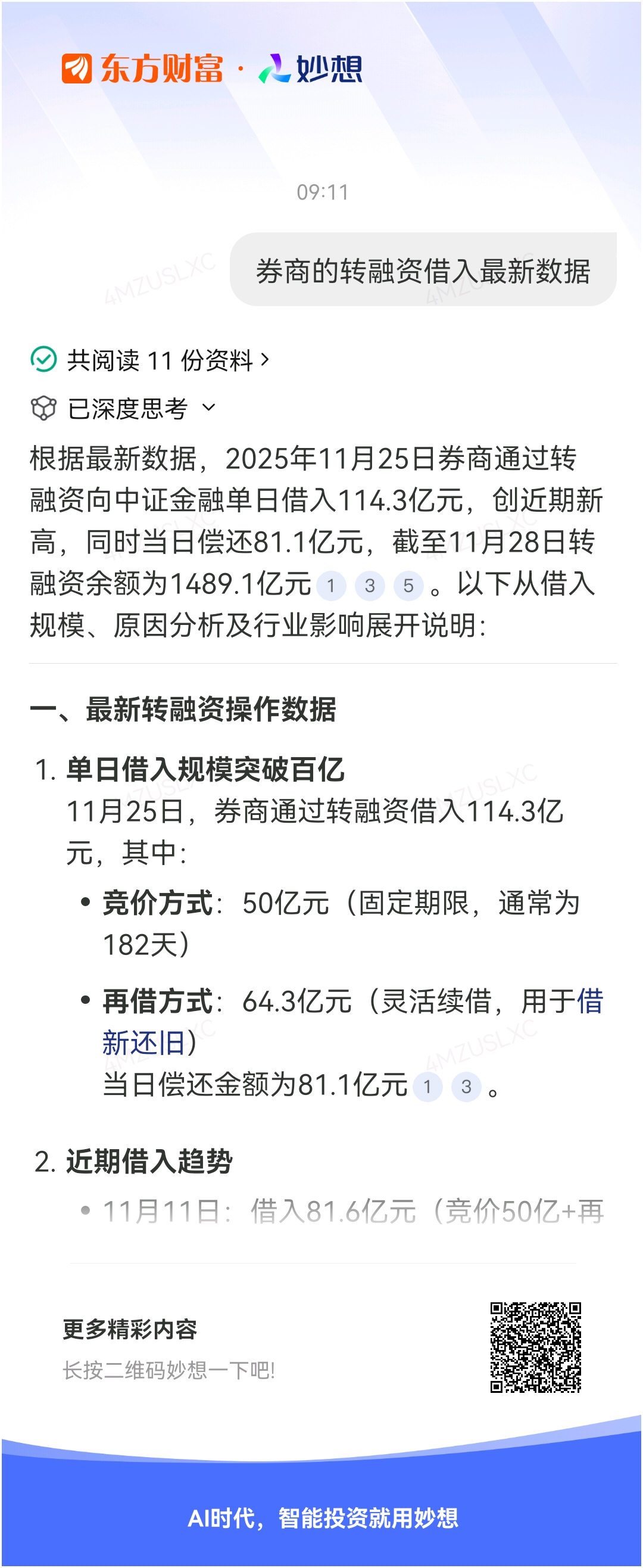 妙想一下:券商的转融资借入最新数据