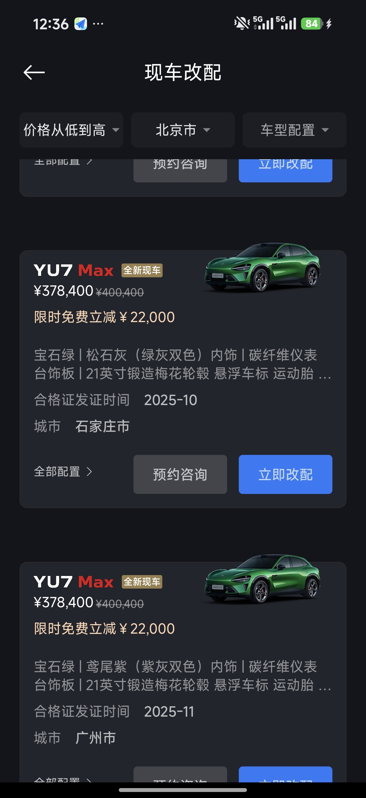 12月1日12点,已锁单未交付用户可优先改配同车型现车。