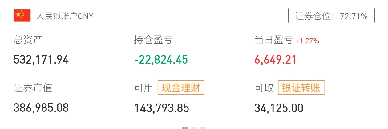 今日收益飘红,持仓稳健增长,现金理财灵活周转,资产配置均衡向好。