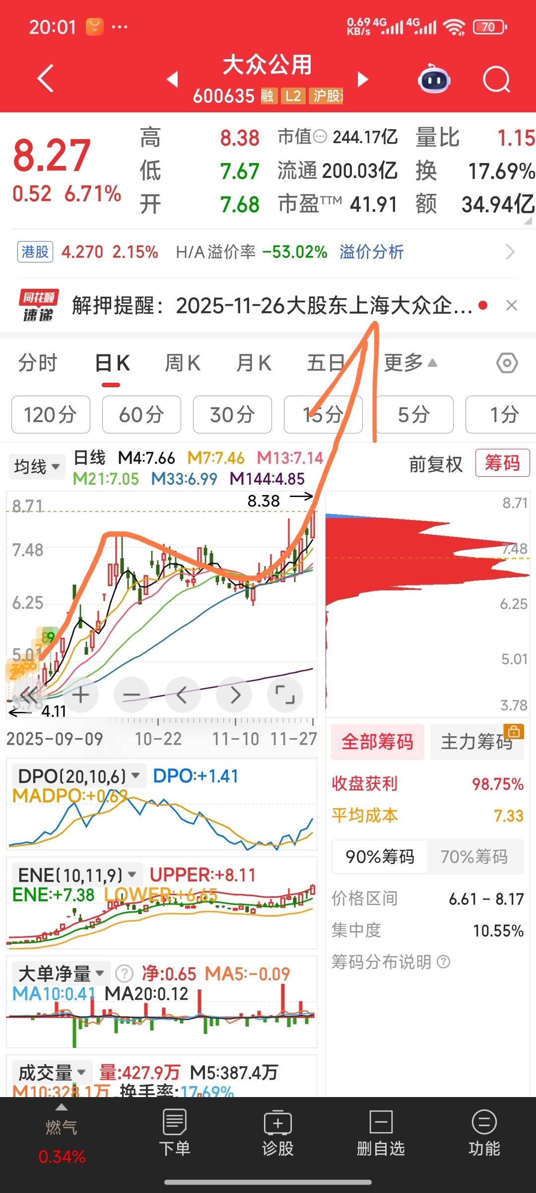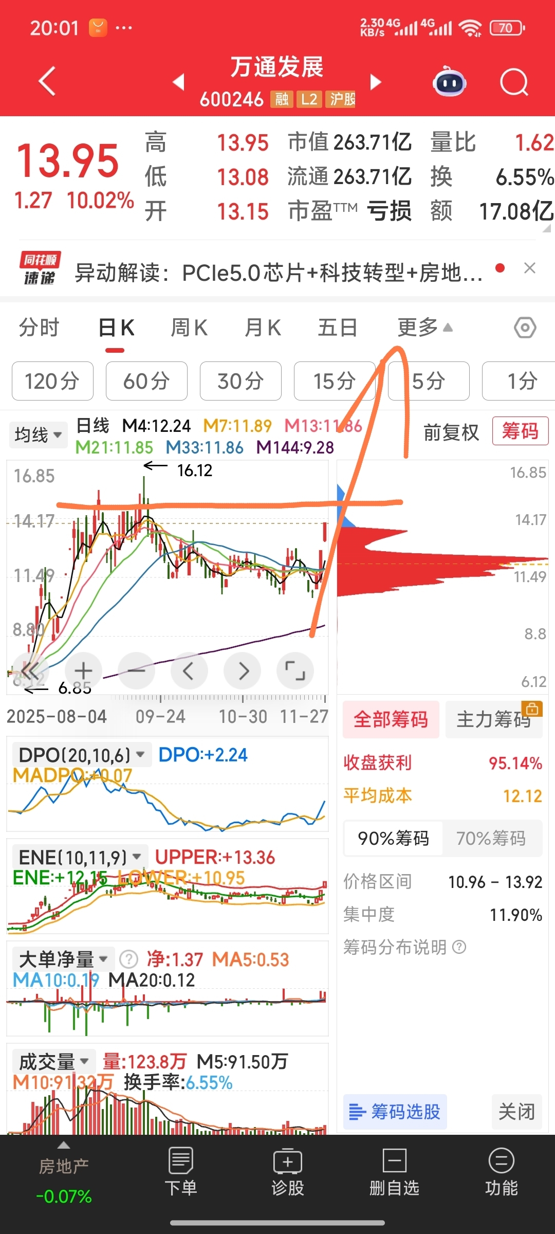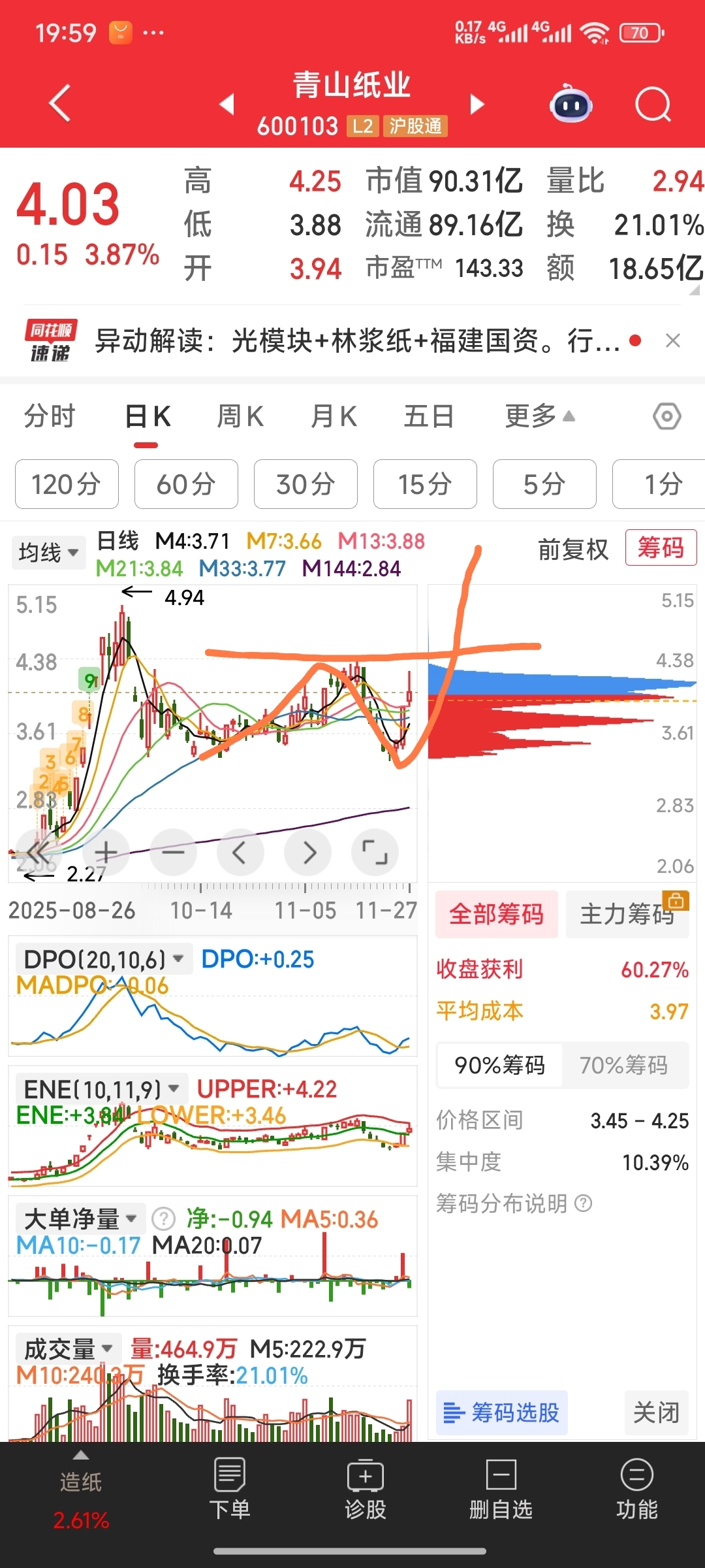 今天再次接回老友万通发展,青山纸业,大众公用,并建仓奋达科技。