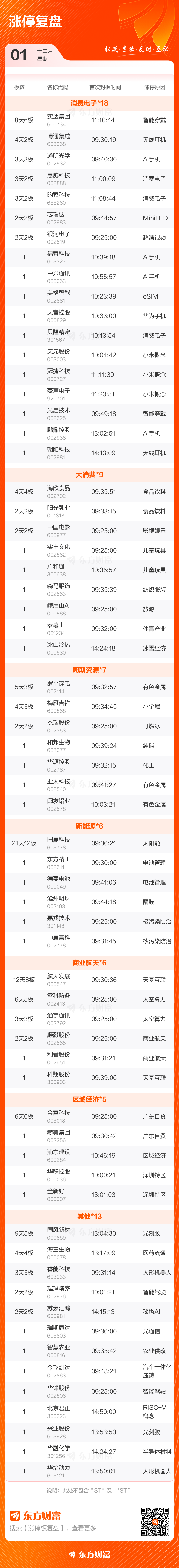12月1日涨停复盘:76股涨停 实达集团8天6板