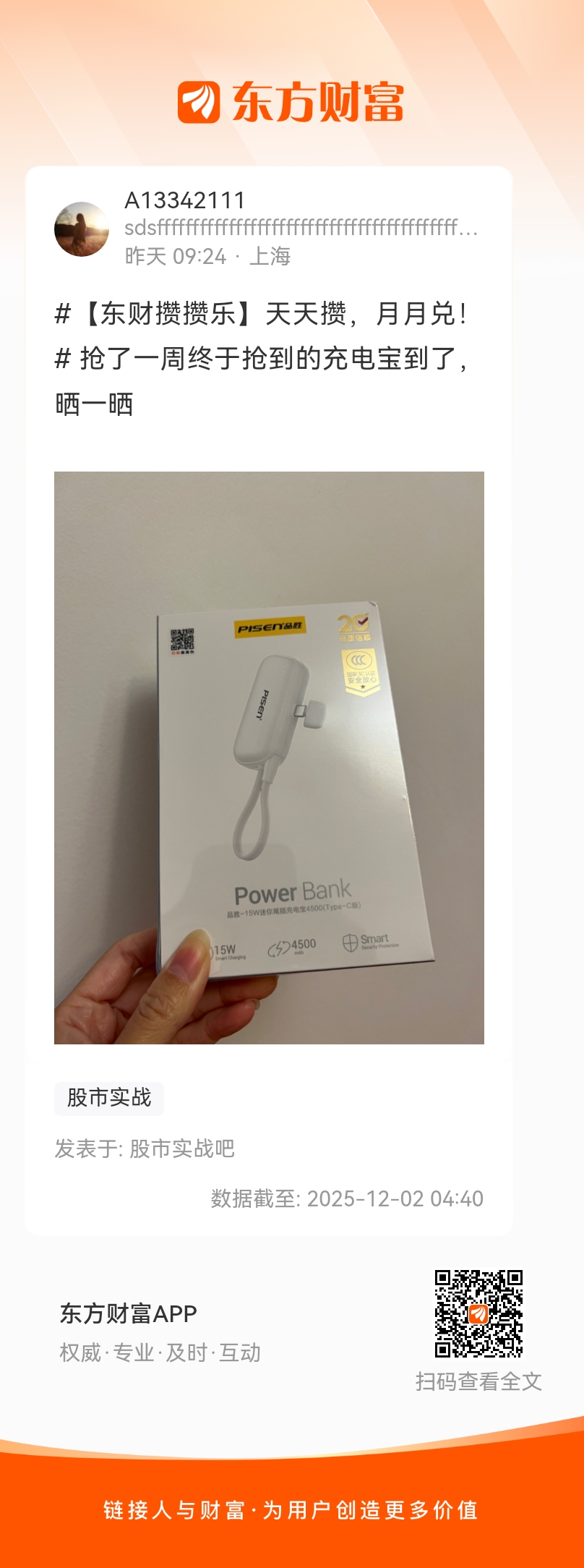 #【东财攒攒乐】天天攒,月月兑!# 抢了一周终于抢到的充电宝到了,晒一晒