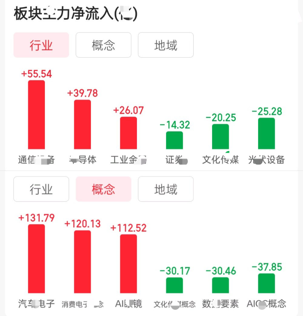 板块:昨日智能音响、AI手机、消费电子、金属锌、金属铅、AI眼镜等几个板块表现得相对活跃,涨幅居前。昨日姿金大量流入汽车电子、消费电子、AI眼镜、通信设备、半导体等板块,资金从AIGC、数据要素、文化传媒、光伏设备、证券板块大量流出。目前板块轮动依旧很快,前面活跃的板块都是一日游、持续性差,适可而止落袋为安为宜。