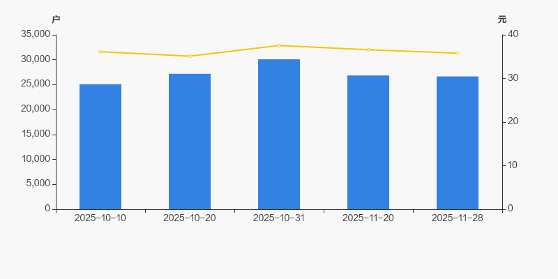 2025年10月10日至今,公司股东户数有所增长,区间涨幅为6.21%。2025年10月10日至2025年11月28日区间股价下降0.92%。