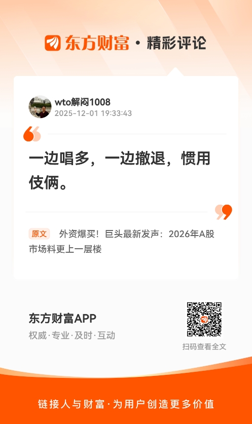 摩根大通也在报告中将中国股票评级上调为“超配”,认为相比潜在下行风险,明年出现大幅上涨的可能性更高。其认为近期市场回调反而形成了具吸引力的介入时点,并预计明年在AI普及、消费刺激与治理改革推动下更有可能迎来亮眼表现。