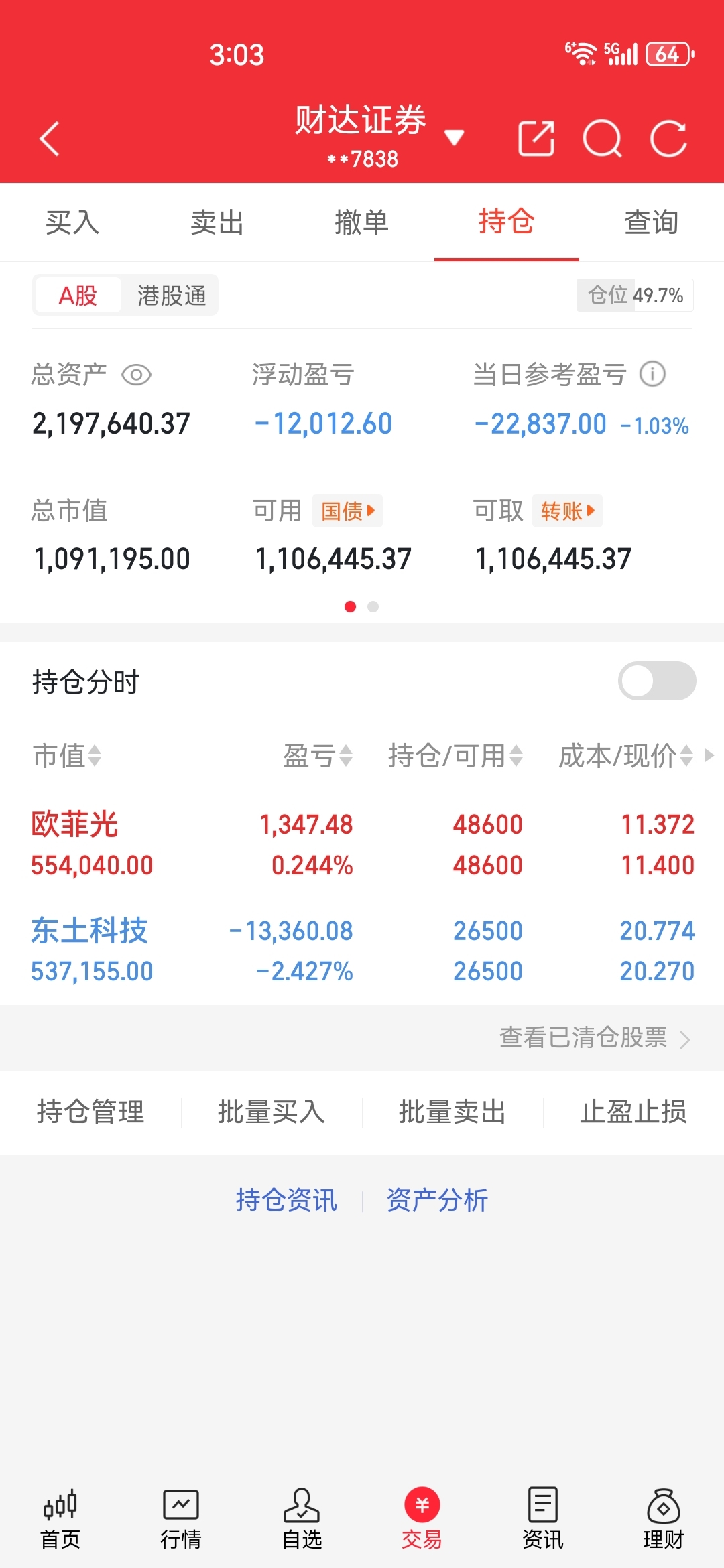 记录100—1000个【第20天】今作总结:继续持有欧菲光、东土科技股市如战