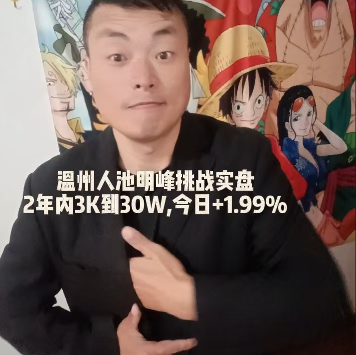 温州人池明峰挑战实盘2年内3K到30W,今日+1.99%#股票#实盘#反人性#无厘头