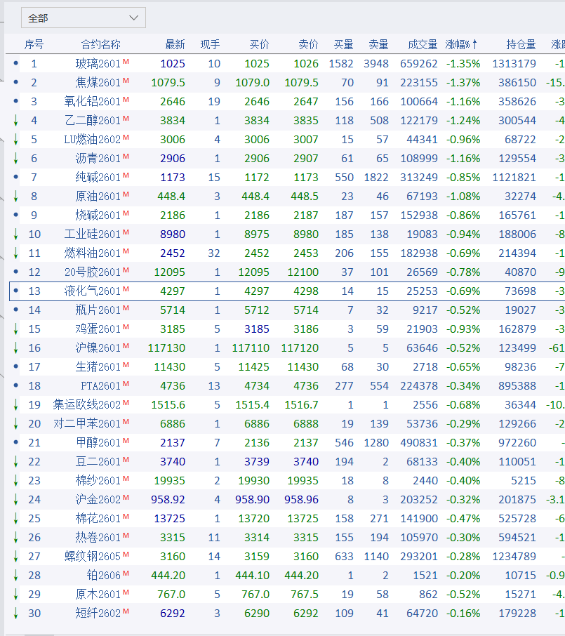 杜家升——【12月3日商品期货】早间开盘,大多产品飘绿,整个盘面呈现跌势,玻璃领