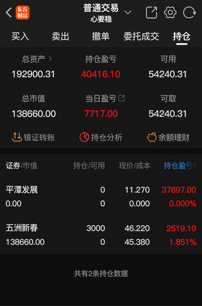 我的持仓(11月底进场)当前资产:19万当日:+40416买入:603667五洲