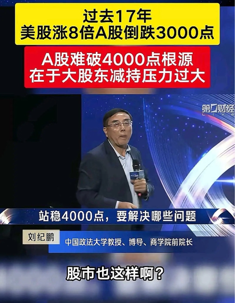 专家∶A股难破4000点的根源在于大股东减持过多!据悉,今年A股上市公司的大股东