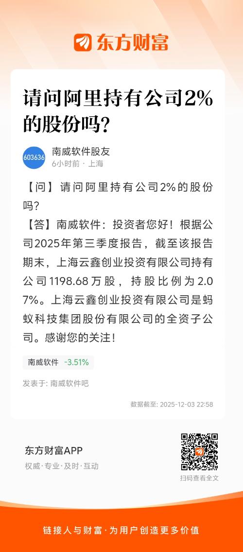 请问阿里持有公司2%的股份吗?