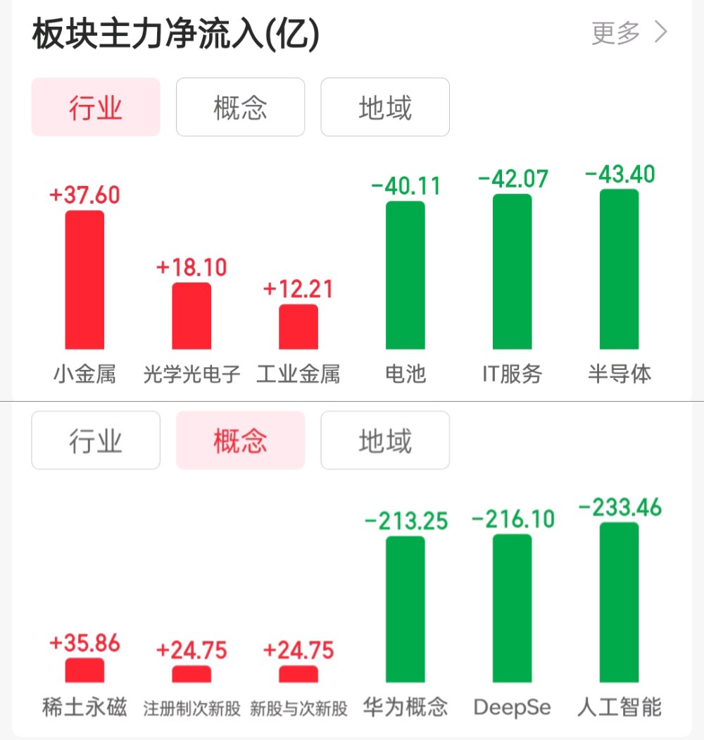 昨日板块呈现分化运行特征,培育钻石、煤炭开采加工、风电设备、中药、工业金属、机场航运等方向表现相对活跃,涨幅居于市场前列。资金流向方面,小金属、光学光电子、工业金属、稀土永磁、新股与次新股等板块获得资金净流入;而人工智能、相关算力概念、华为概念、半导体、IT 服务等板块则出现资金净流出。从近期市场节奏来看,板块轮动速度整体偏快,多数题材呈现出短期交易特征。值得注意的是,商业航天板块的活跃周期相对更长,具备一定的持续性。在此背景下,对于板块内的交易机会,建议结合自身持仓情况,把握落袋为安的节奏,合理控制交易风险。