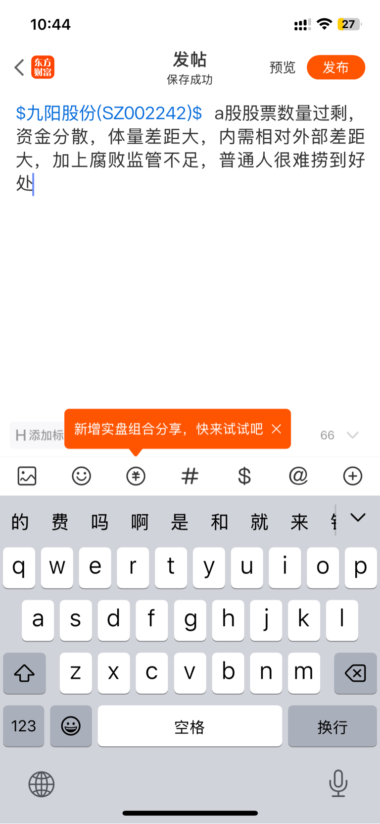 温馨提示: 1.根据《证券法》规定,禁止编造、传播虚假信息或者误导性信息,扰乱证券市场;2.用户在本社区发表的所有资料、言论等仅代表个人观点,与本网站立场无关,不对您构成任何投资建议。用户应基于自己的独立判断,自行决定证券投资并承担相应风险。《东方财富社区管理规定》