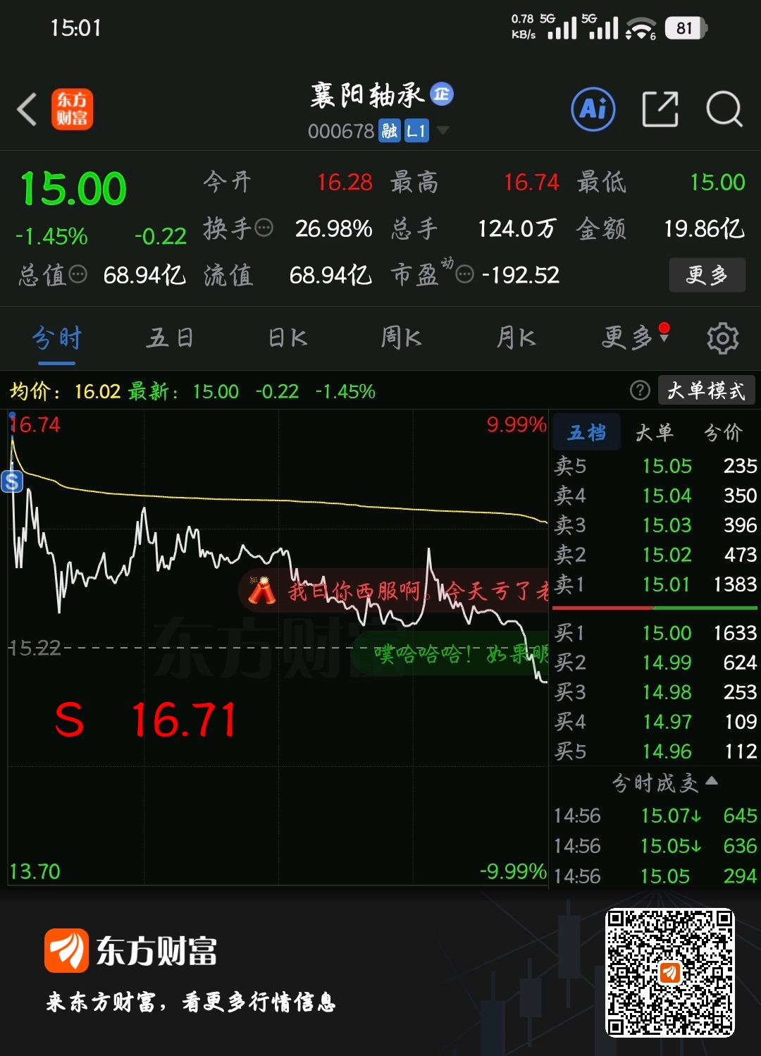 温馨提示: 1.根据《证券法》规定,禁止编造、传播虚假信息或者误导性信息,扰乱证券市场;2.用户在本社区发表的所有资料、言论等仅代表个人观点,与本网站立场无关,不对您构成任何投资建议。用户应基于自己的独立判断,自行决定证券投资并承担相应风险。《东方财富社区管理规定》