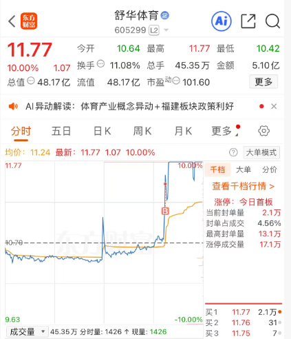 打野新开了个舒华体育,消息面“14:14【国家体育总局:支持福建加快建设两岸体育融合发展示范区】”,看了眼舒华体育福建板块的,先进了再说。也就那样吧,第一波上板秒炸,后面陆续炸了几次。