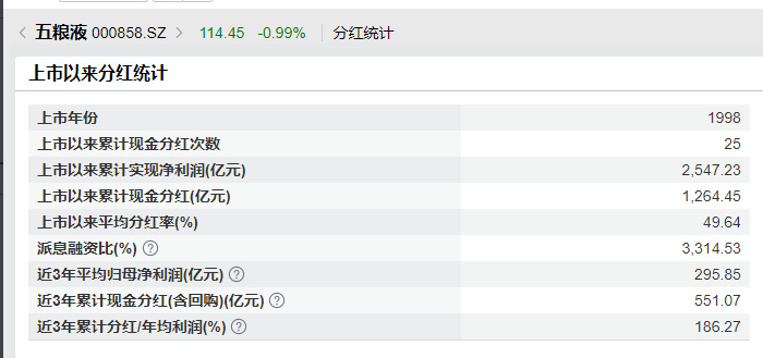 据Wind统计,五粮液自上市以来,累计实施了25次现金分红,累计分红金额超过1200亿元。今年10月底,公司发布了中期利润分配预案,拟每10股派发现金红利25.78元(含税)。