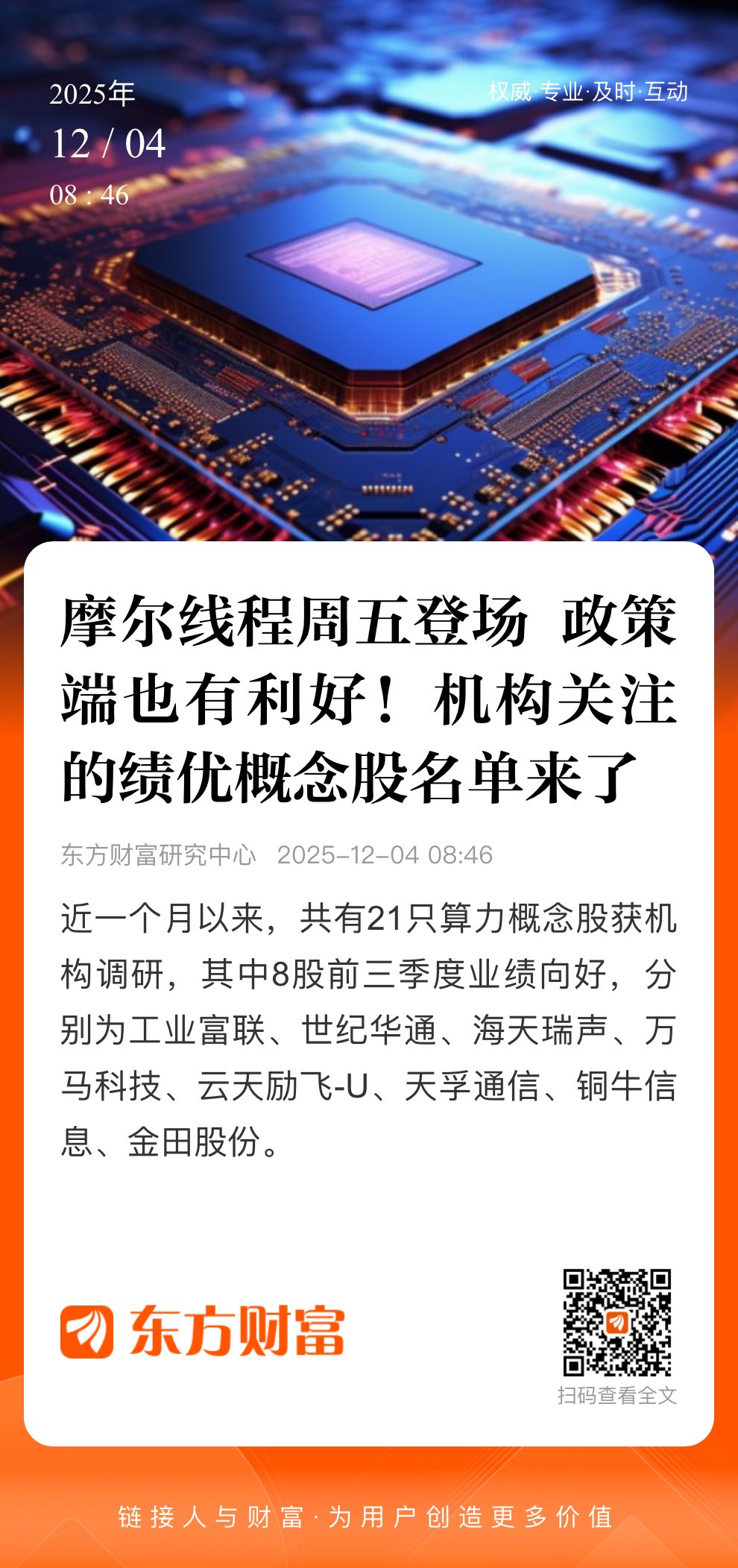 12月3日晚间,摩尔线程公告称,经上海证券交易所审核同意,公司股票将于12月5日(周五)在上海证券交易所科创板上市。