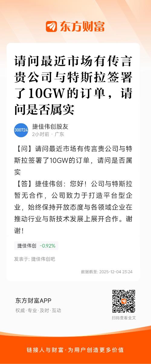 请问最近市场有传言贵公司与特斯拉签署了10GW的订单,请问是否属实