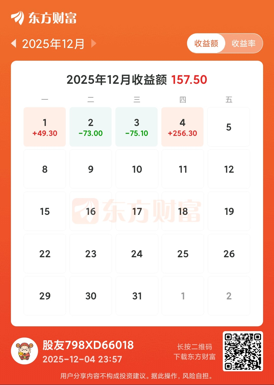 今天赚256.30元