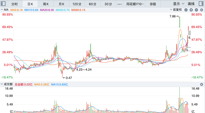 龙洲股份:昨天个股出现了跳空拉升,再度封板的走势,目前走出二连板行情。公司具有现在市场非常热门的多个题材,无论是海峡两岸、卫星导航这两个题材都是核心的概念,其次公司同样也具有人形机器人的概念,这多题材的加持给公司在过去股性当中一直表现极其活跃的核心因素。在当前来讲,大级别通道结构突破前面7.80不在话下,所以今天只要能涨停,就能有5连板动能。