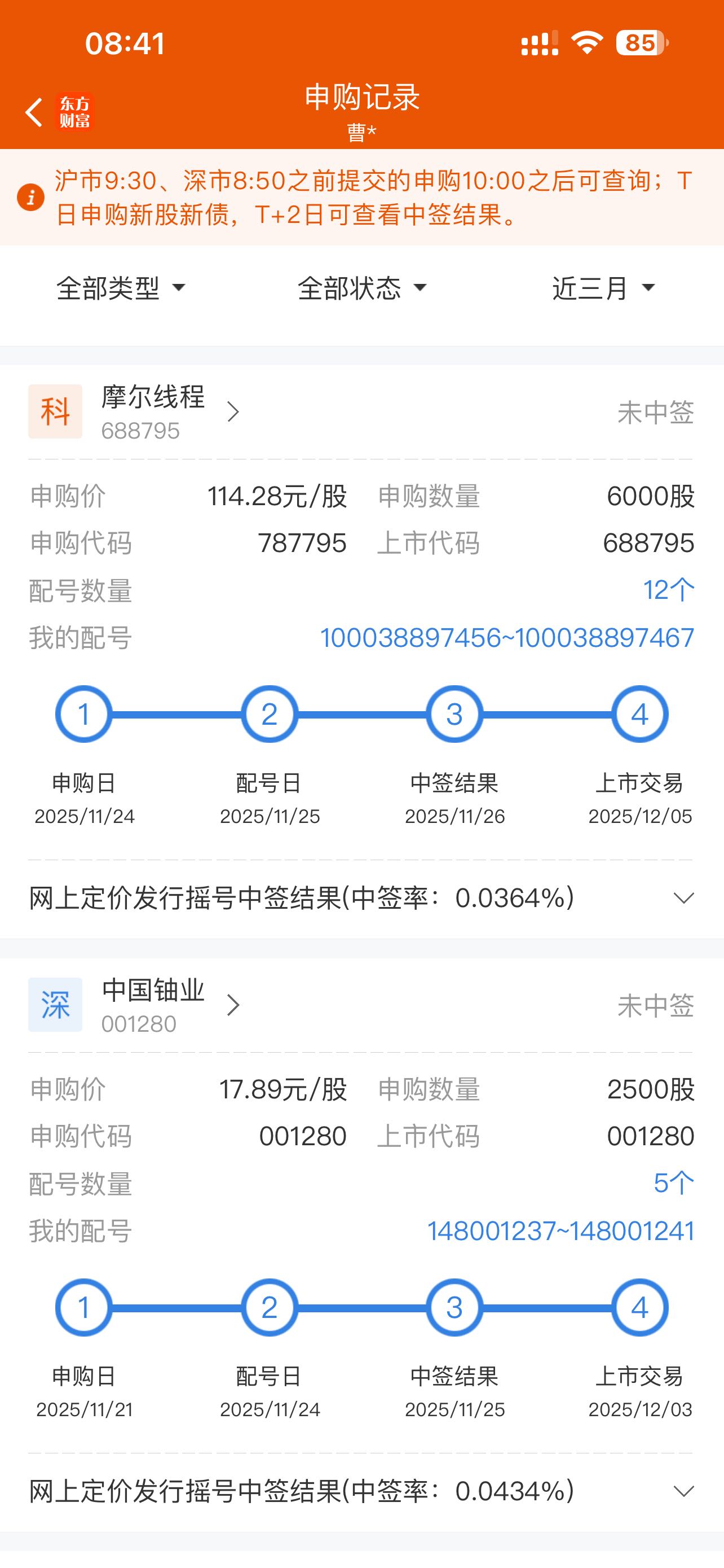 若以上市首日最高价计算,同宇新材、中国瑞林、影石创新的打新收益位居前三,最高浮盈分别可达7.499万、7.22万和7.04万元。