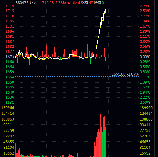 上涨超过4000家,市场在证券带动人气的条件下出现普涨