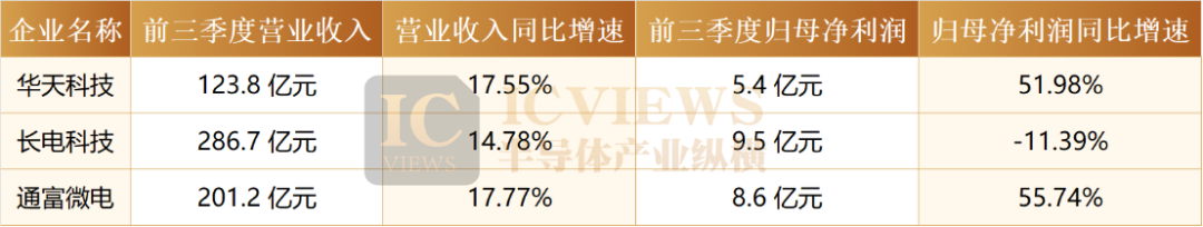 在行业向好的背景下,国内头部封测企业华天科技、长电科技、通富微电陆续发布2025年三季度财报,三家企业整体呈现增长态势,其中部分企业核心指标表现突出,背后折国产先进封装技术突破与市场需求升级的深度契合。