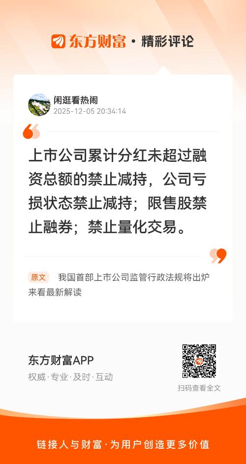 田利辉指出,当前发布《监管条例》的时机已经成熟,此次文件的修订既贴合上市公司高质量发展的诉求,从并购重组、市值管理、回报投资者方面进行规范鼓励,也强化了严监严管的法治基调,明确监管底线要求,促进上市公司在规范的道路上走高质量发展之路。