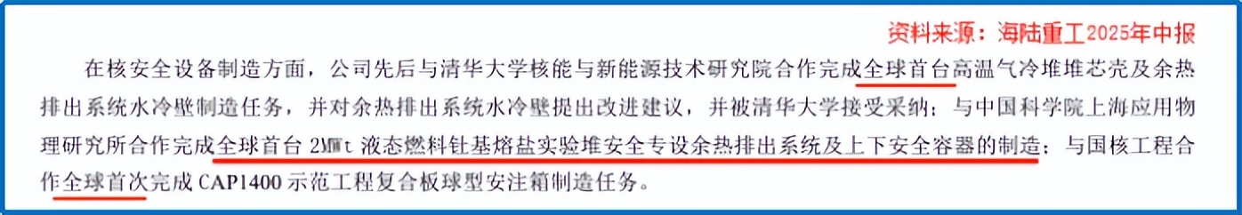 钍基核反应堆与现有核电站最大的区别之一,就是安全专设余热排出系统及上下安全容器的设计更新,而这部分恰是海陆重工的地盘。
