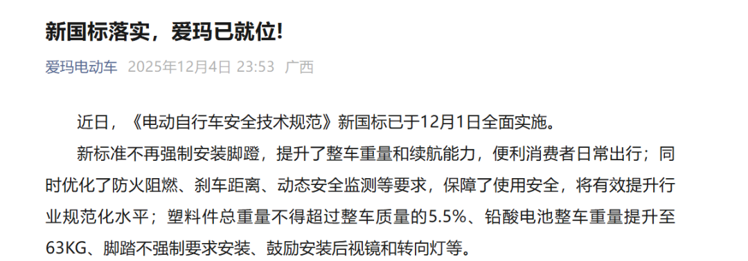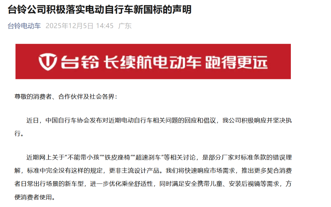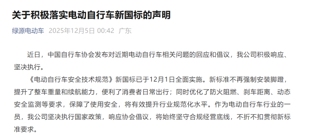 为了证明自己不是官方所说的“个别企业”,官方下场之后,雅迪、爱玛、台铃、绿源这些国内的电动车企业,也纷纷坐不住了。