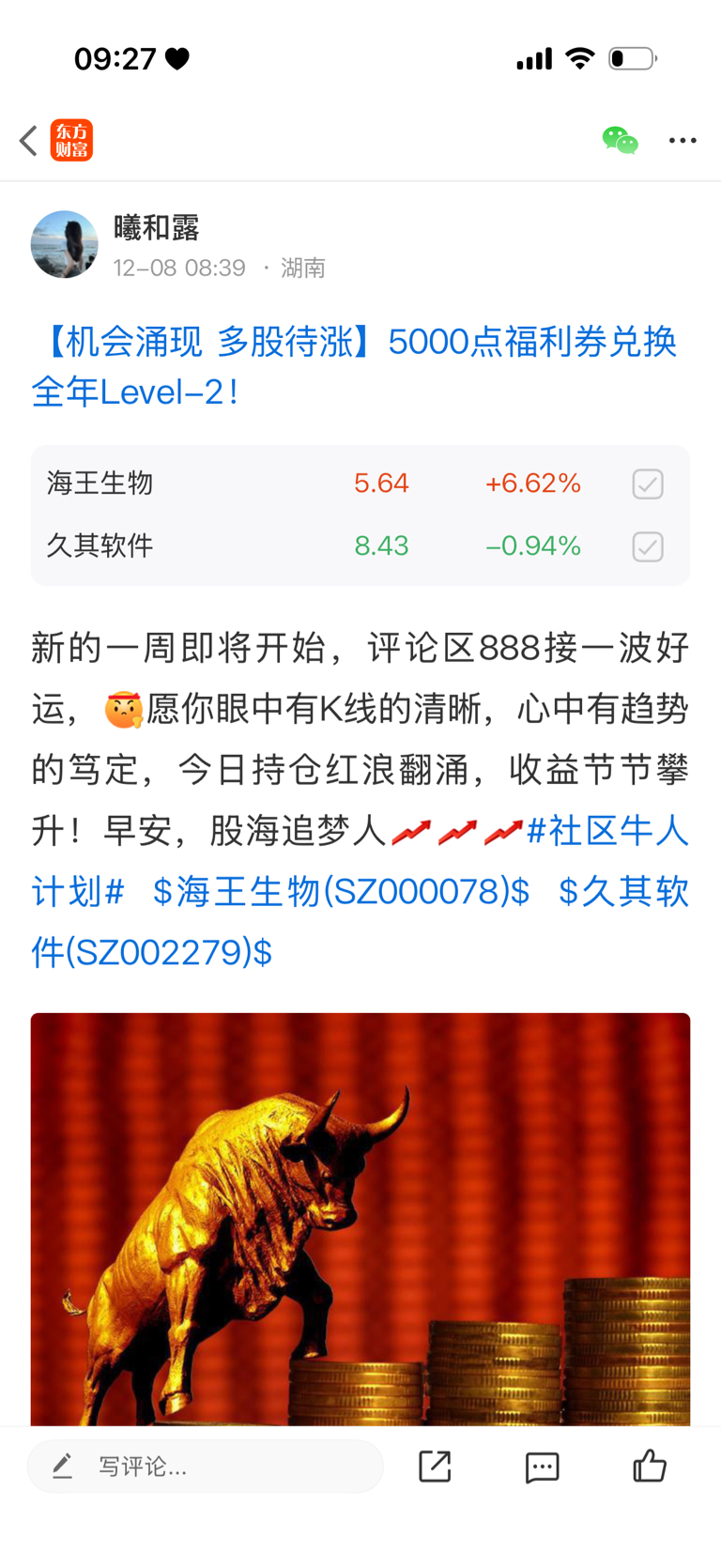 温馨提示: 1.根据《证券法》规定,禁止编造、传播虚假信息或者误导性信息,扰乱证券市场;2.用户在本社区发表的所有资料、言论等仅代表个人观点,与本网站立场无关,不对您构成任何投资建议。用户应基于自己的独立判断,自行决定证券投资并承担相应风险。《东方财富社区管理规定》