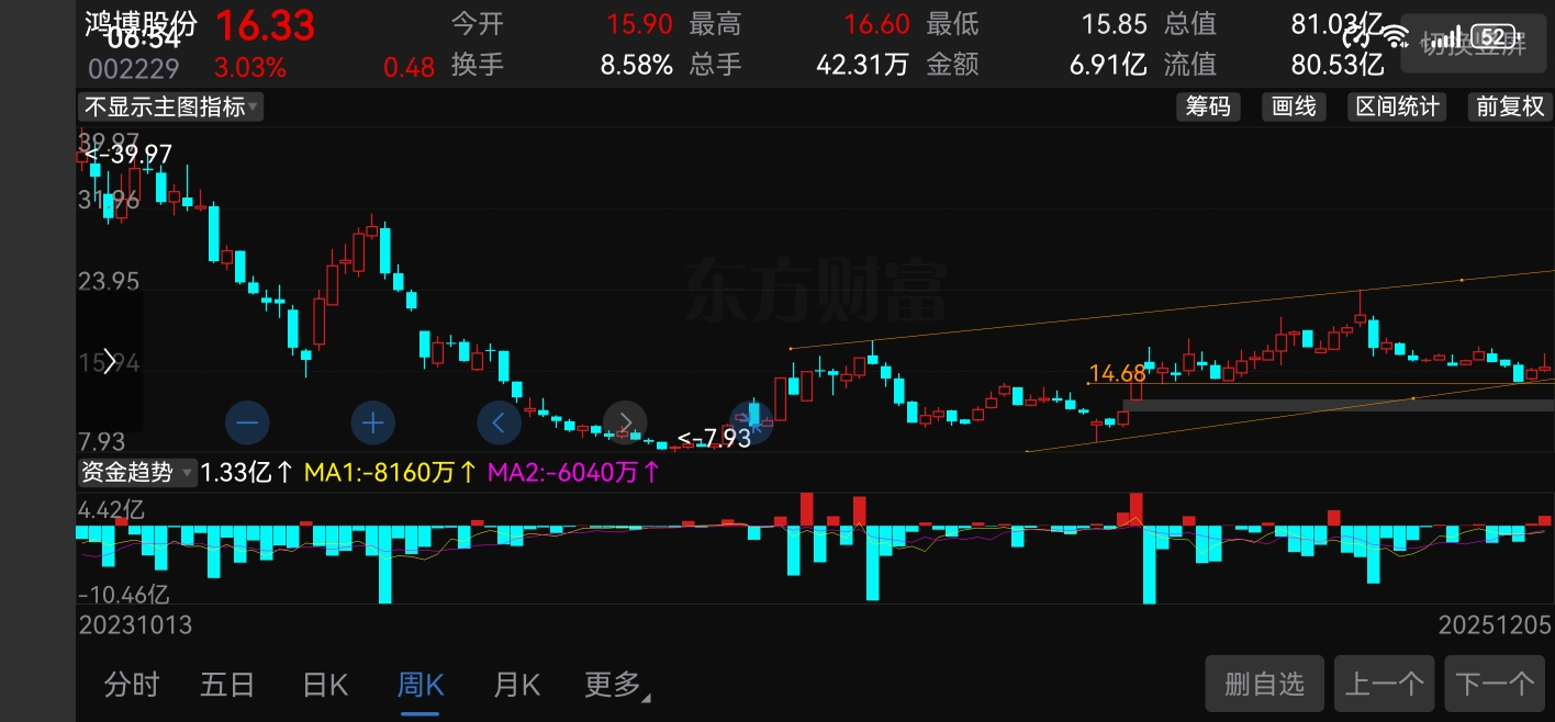 金马的支撑压力位27.8-31鸿博的支撑压力位15.5-26耐心持有即可