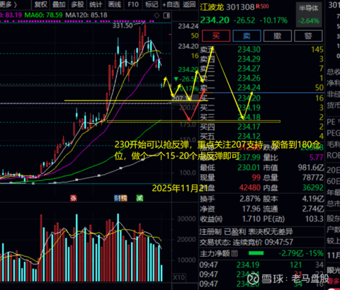 今天算力大涨,其分支存储芯片也分得一杯羹,但是算力分化严重,目前除了光模块龙头还在强势突进,其余的普遍已经大回踩,江波龙虽然符合预期在230稳住了,但是也横盘了两周才反弹,比起$兆易创新(SH603986)$ 波动要大,但是走势稍微滞后,后面还是兆易比较稳。还有就是光模块龙头$中际旭创(SZ300308)$ 。其余的电源设备,液冷这些会比较弱。PCB也分化严重。后面关注谷歌链为主