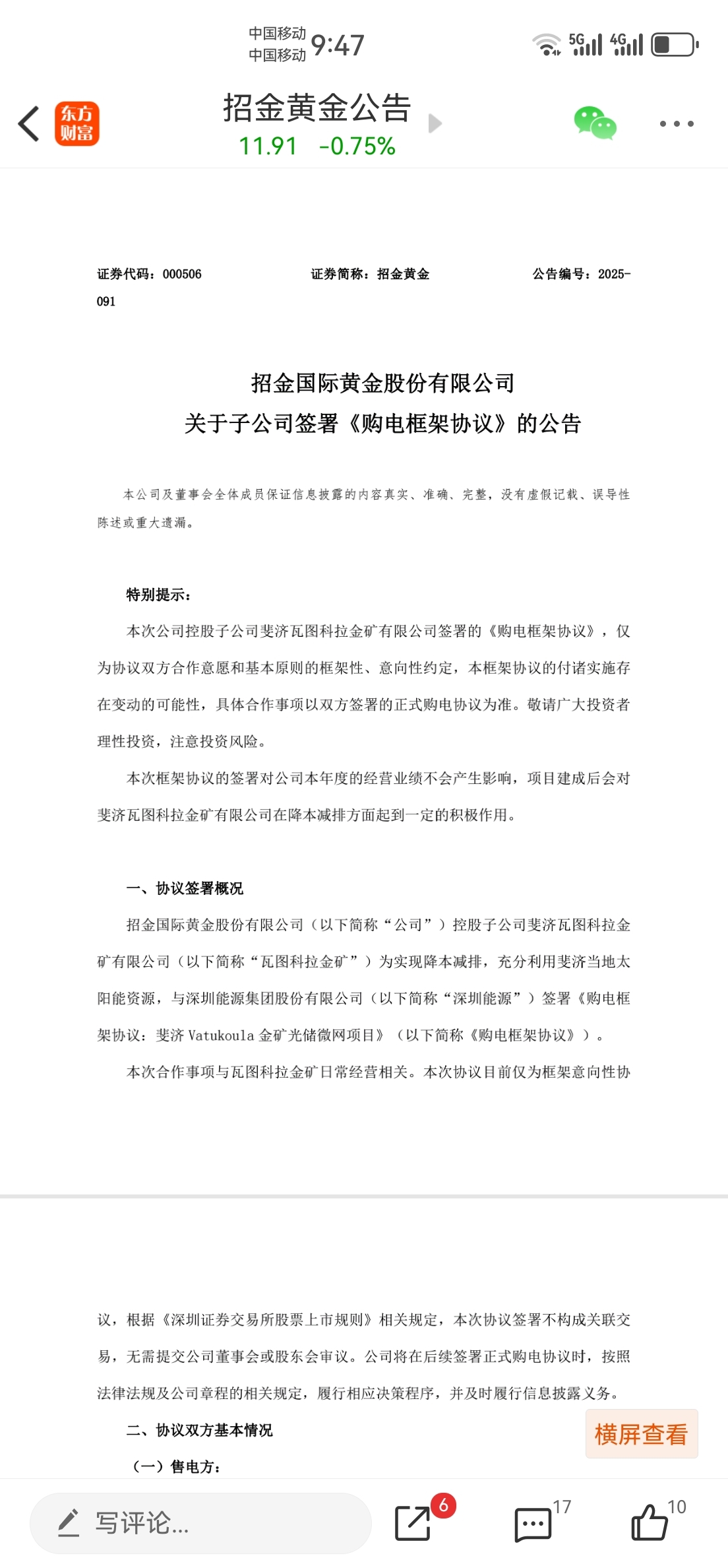 招金黄金:子公司瓦图科拉金矿与深圳能源签署购电框架协议每日经济新闻1小时前约37秒科技革命爆发,如何把握产业增长红利?每经AI快讯,12月8日,招金黄金(000506.SZ)公告称,公司控股子公司斐济瓦图科拉金矿有限公司与深圳能源集团股份有限公司签署《购电框架协议》,旨在实现降本减排,充分利用斐济当地太阳能资源。该框架协议为意向性协议,具体合作事项以双方签署的正式购电协议为准。